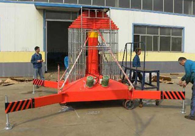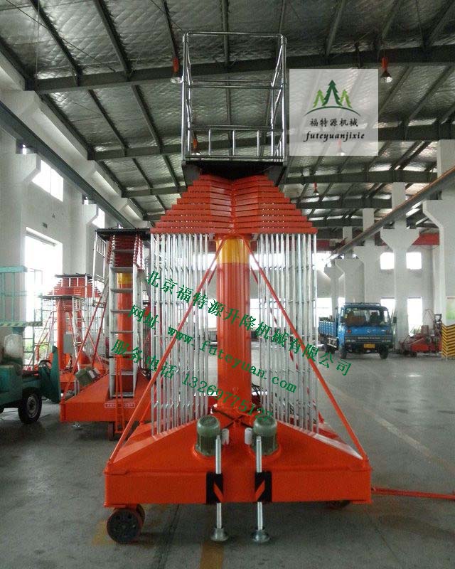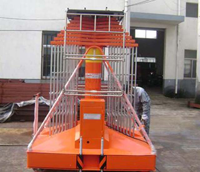 該產品是一種多用途的單作用伸縮式套簡油缸組成的垂直升降機械??蓮V泛用于車站、碼頭、賓館大廳、車間等高空作業的場合。整機設計結構緊湊、晃動小、重量輕、移動方便等特點,是登高作業安全,經濟實用的機具。