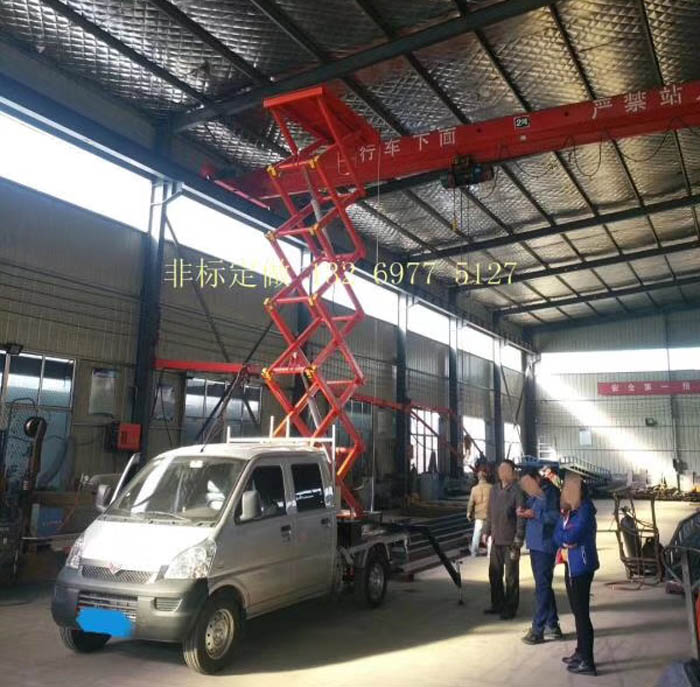 非標(biāo)定制車載剪叉式升降機(jī)移動方便,無需外接電源,機(jī)動性強(qiáng),工作范圍大。適用于市政建設(shè)維護(hù)、路燈照明、公路設(shè)施維護(hù)、工程搶修、園林修剪、多個加油站的維護(hù)等。