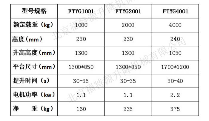 ▍固定式電動升降機常規(guī)參數(shù) / Product Parameter